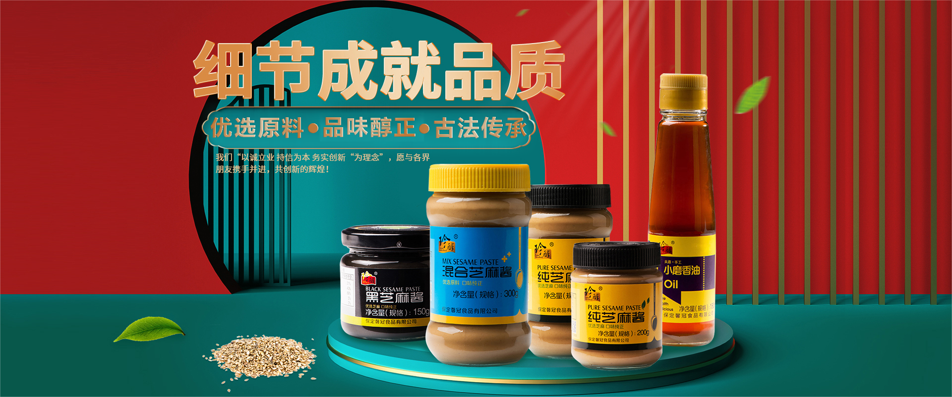 保定馨冠食品有限公司坐落在河北省保定市滿城區(qū)李鐵莊村。以“以誠立業(yè) 持信為本 務實創(chuàng)新“為理念”。馨冠公司主要品牌“馨冠”“珍醇”“靖王”等注冊商標。公司主營芝麻油、芝麻醬、花生醬三大系列40多個產(chǎn)品。